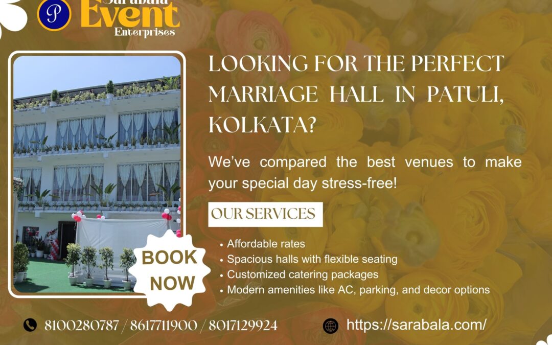 Patuli Kolkata offers a mix of budget-friendly community halls and mid-range banquets for local weddings. However, for families who want spacious, premium venues with full services, Sarabala Event Enterprises provides unmatched solutions nearby. From affordable packages to destination-style experiences, Sarabala ensures your Patuli wedding is memorable, stress-free, and perfectly tailored to your needs.